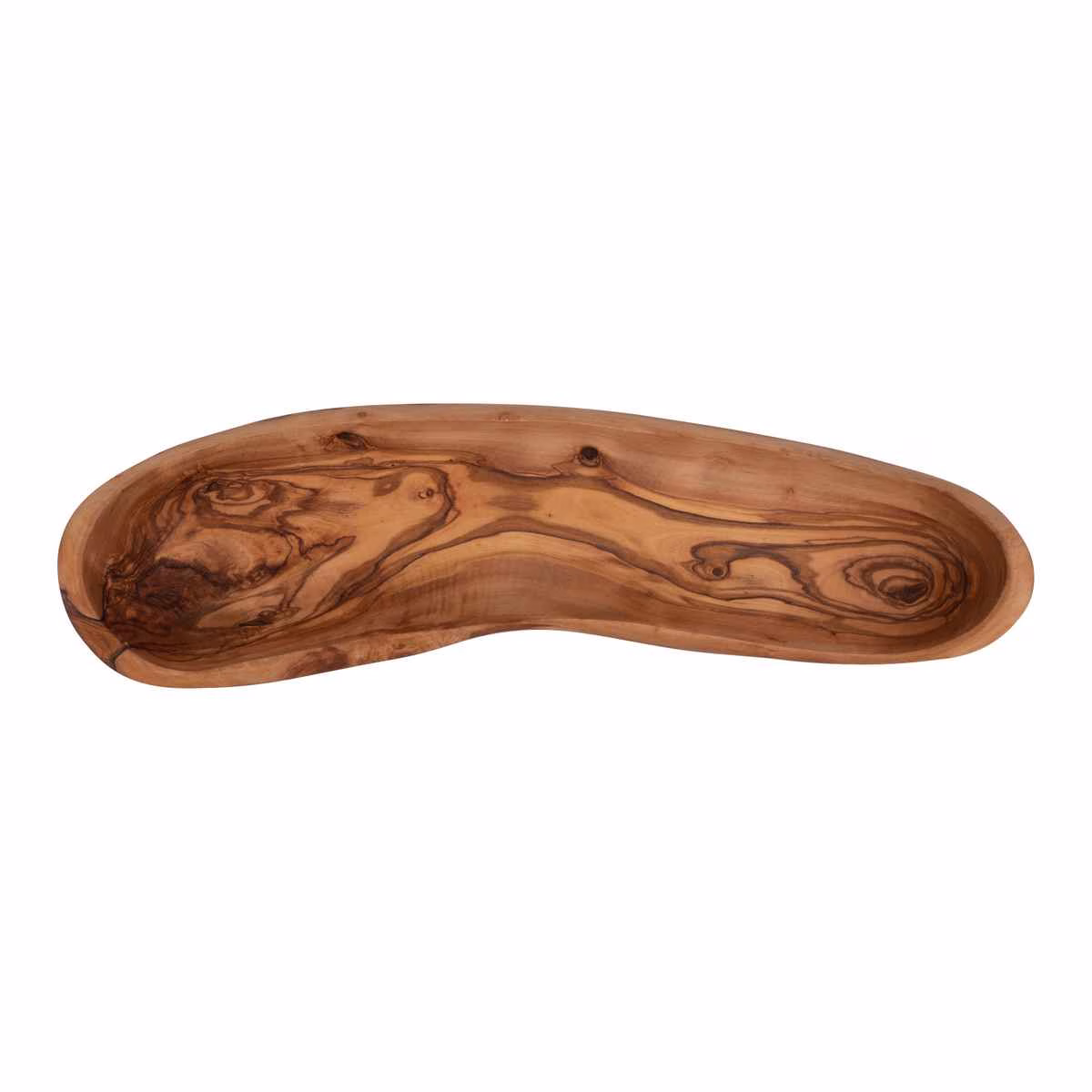 Deze langwerpige olijfhouten broodmand van Bowls and Dishes is perfect voor het stijlvol presenteren van stokbrood, broodjes of een kleine salade. Dankzij de natuurlijke vorm van de olijfboom is elke mand uniek, met zijn eigen karakteristieke houttekening.